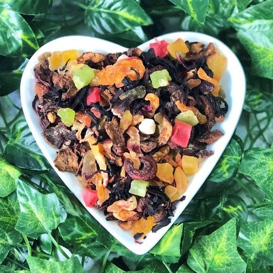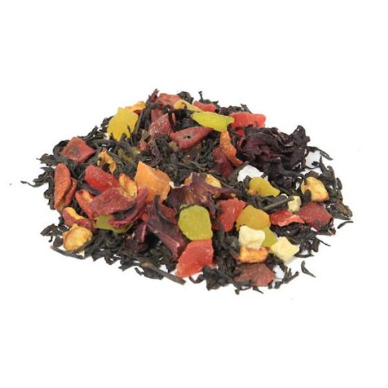 - Thành phần: Hồng trà (trà đen), hoa hibicus, trái cây sấy khô (kiwi, dứa, xoài, dâu, chuối, nho…)